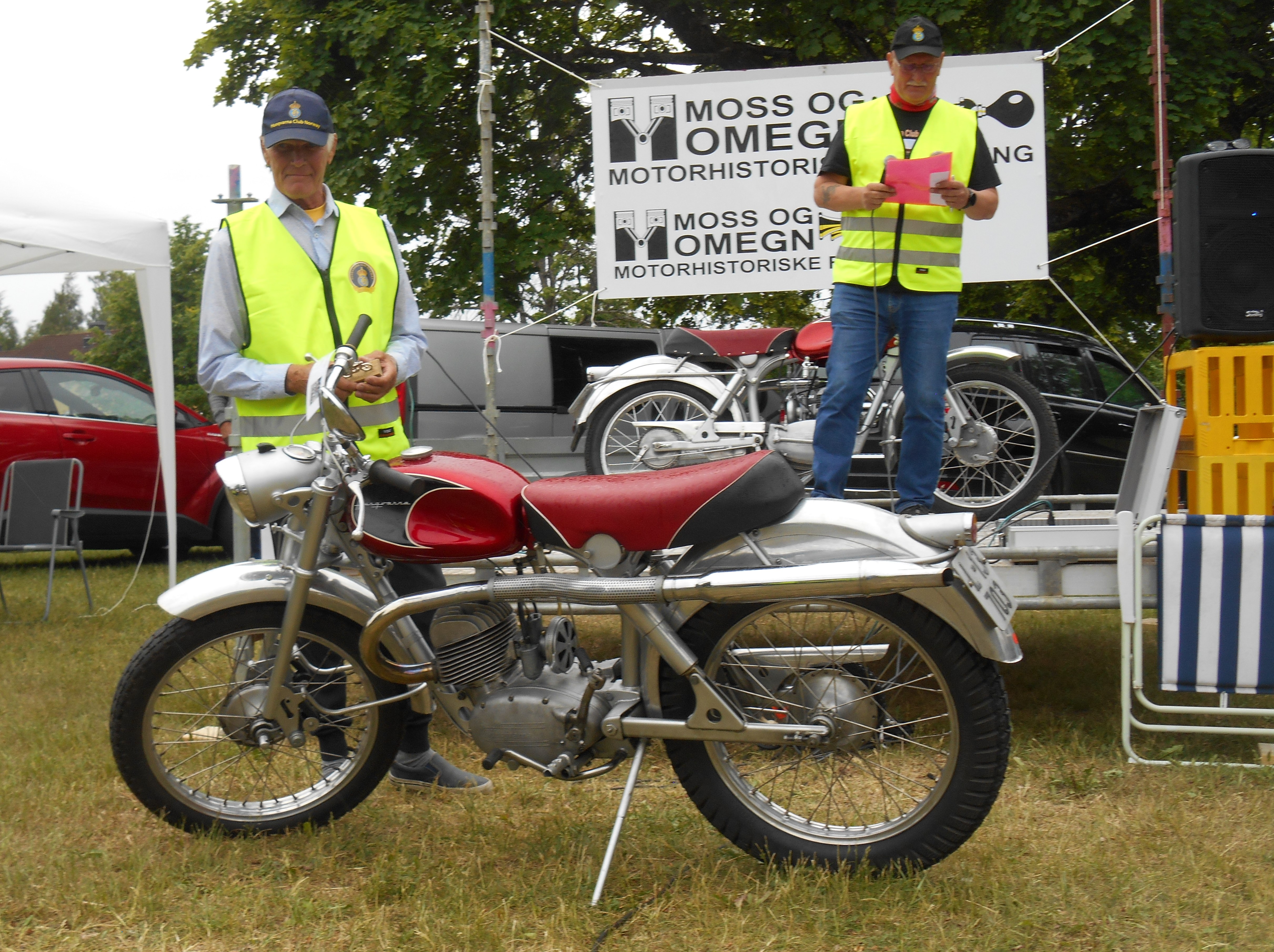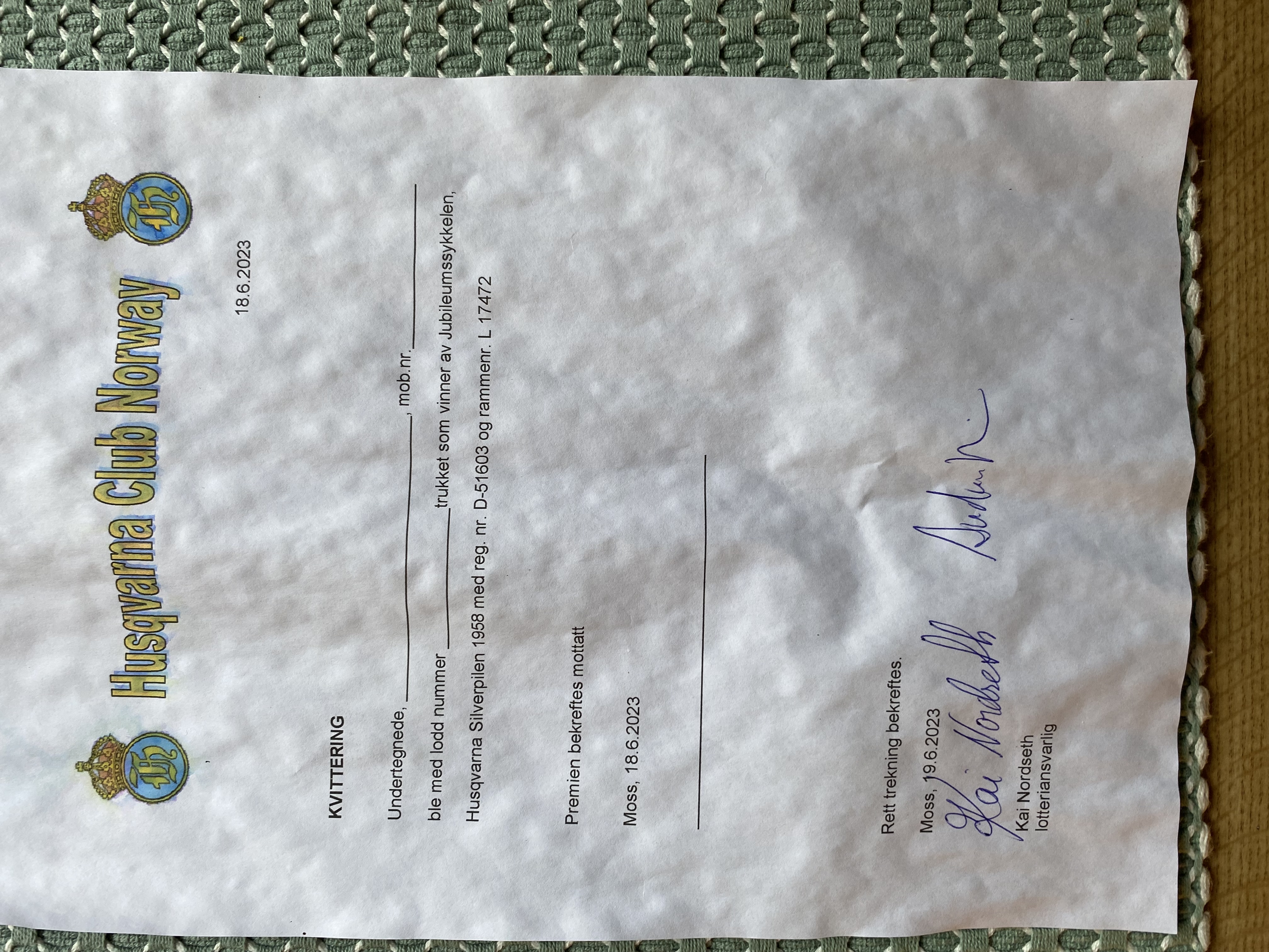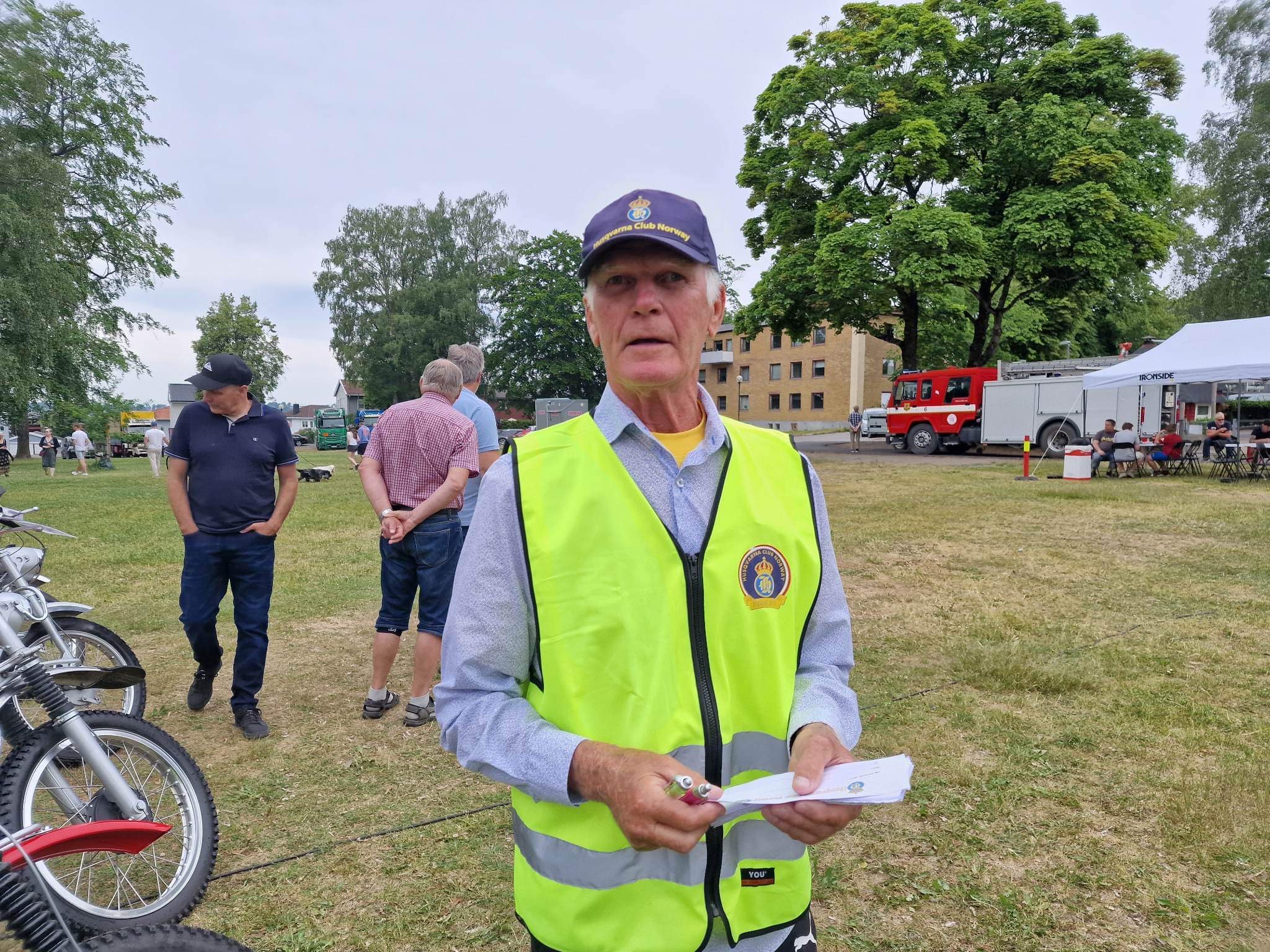 Ordføreren i Moss Hanne Tollerud trekker her vinnerloddet til Torbjørn Vik fra Heimdal under jubileumsfeiringen i Melløsparken 18 juni.