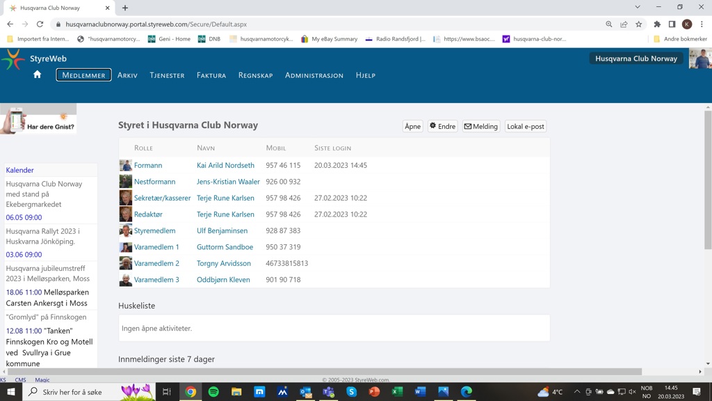 Dette pluss mye mer er tilgjengelig i løsningen, men vi har valgt å ta i bruk det mest nødvendige for vår klubb.